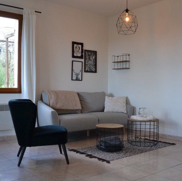 De sfeervol ingericht L-vormige woonkamer / keuken heeft een oppervlakte van ruim 30m2 en heeft via de openslaande tuindeuren prachtig uitzicht over de tuin en direct toegang tot het terras. In de woonkamer staat een grote tafel, een bank en fauteuil. De keuken is voorzien van een volautomatische koffiemachine (verse bonen), gaskookplaat, keukenbenodigdheden en koelvriescombinatie.